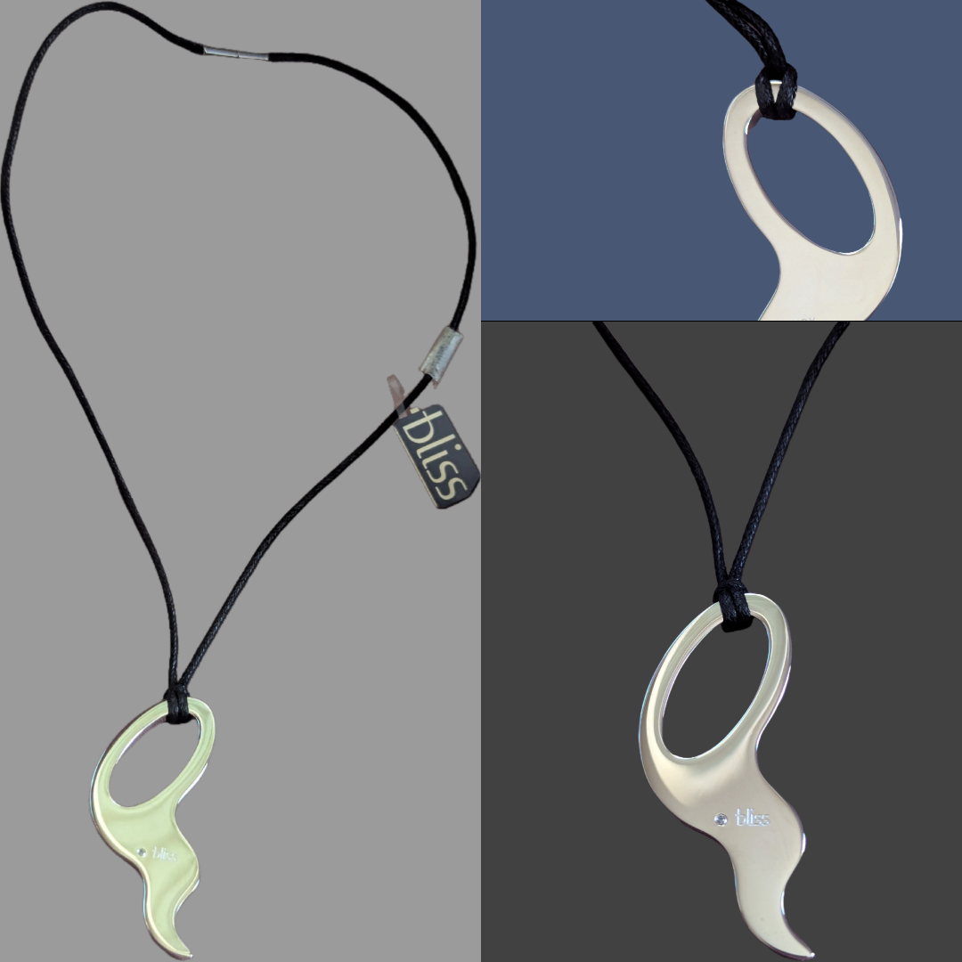 Diese Bliss Unisex Halskette kombiniert ein extravagantes Design mit hochwertiger Verarbeitung. Der Edelstahl-Anhänger misst ca. 6 cm in der Länge und 2–3,5 cm in der Breite und ist mit einem funkelnden Diamanten von 0,01 ct veredelt. Das ca. 45 cm lange schwarze Band sorgt für einen modernen, unaufdringlichen Look, der sich vielseitig kombinieren lässt. Ideal für alle, die Wert auf dezente Eleganz und langlebige Materialien legen.